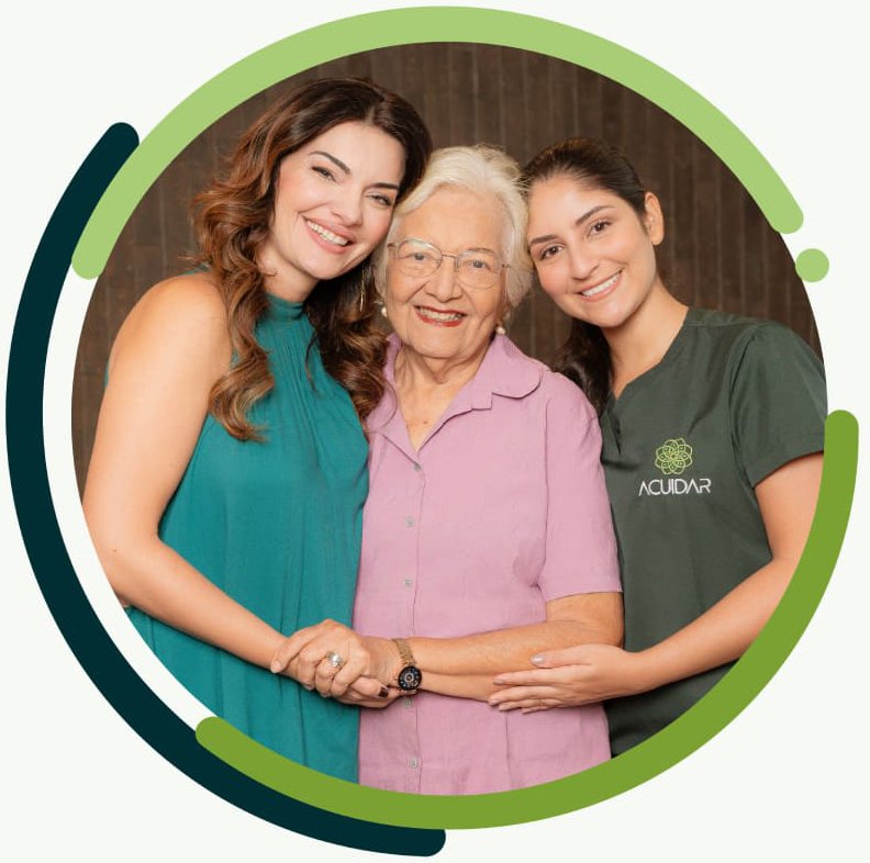 Assistência completa, com atenção à rotina, higiene, alimentação e medicação.