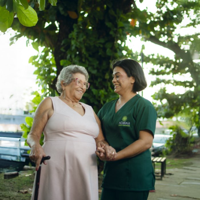 Cuidado profissional no lar com atenção às rotinas e ao bem-estar do assistido.